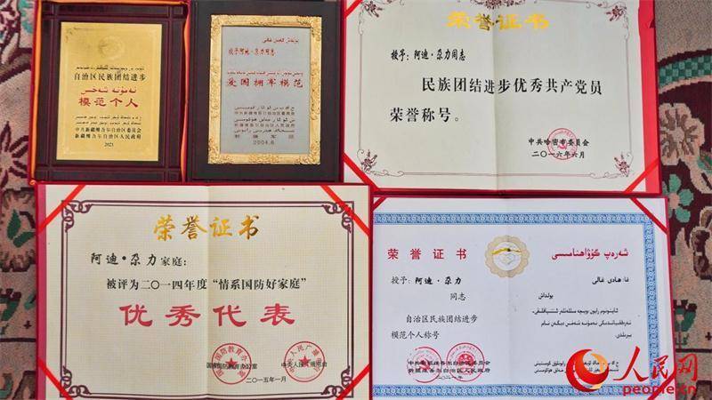 阿迪·尕力所获部分荣誉。人民网 李欣洋摄